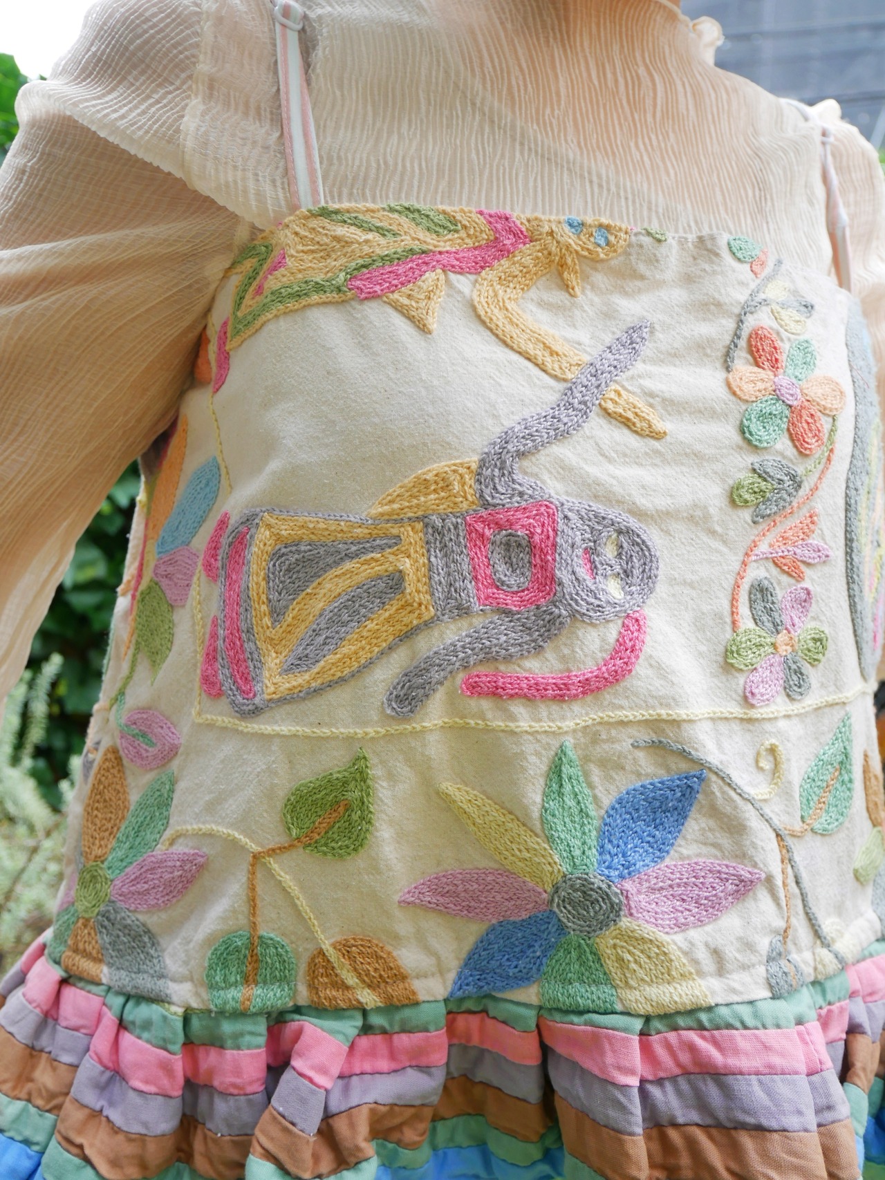 スザニ刺繍ビスチェ ライトブルー×パステルカラー