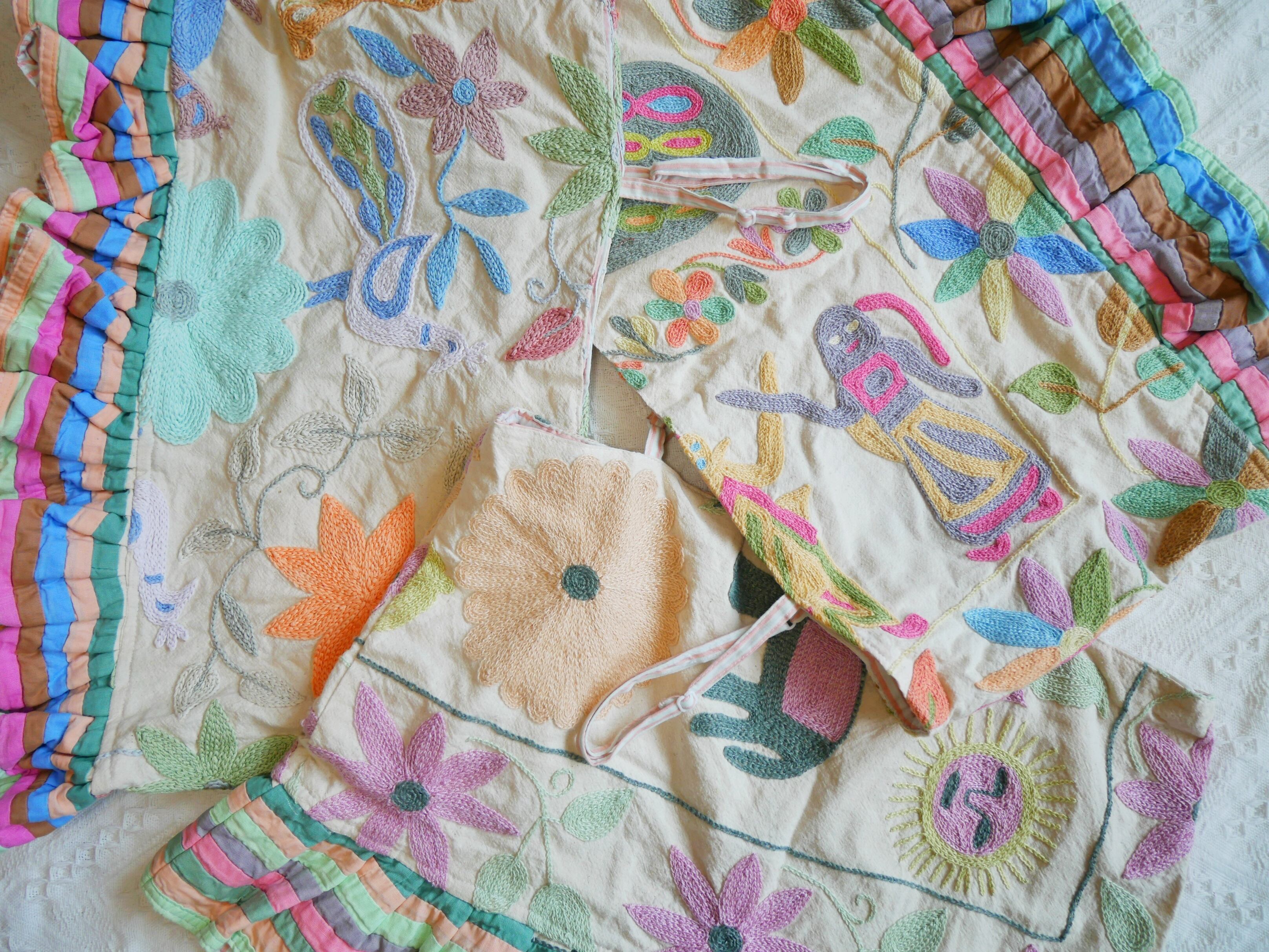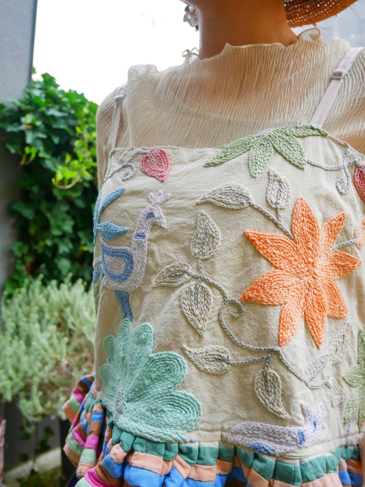 コットン素材のスザニ刺繍マルチカバーを使用したビスチェです。