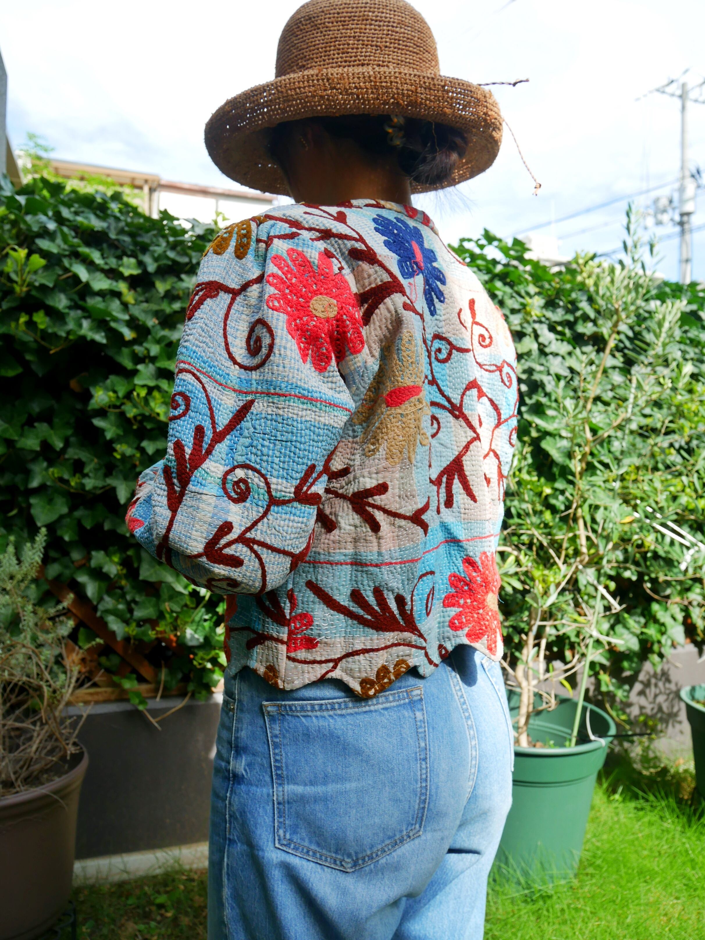 スザニヴィンテージカンタキルトのマルチカバーを使用したスザニジャケットです!!