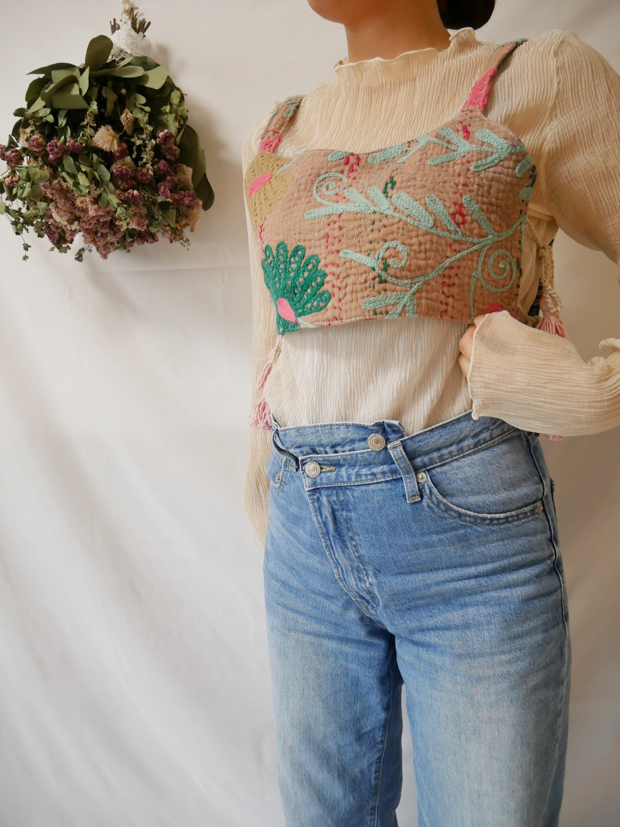 ウズベキスタンの美しい手仕事であるスザニ刺繍が融合した、美しい唯一無二のビスチェ♡